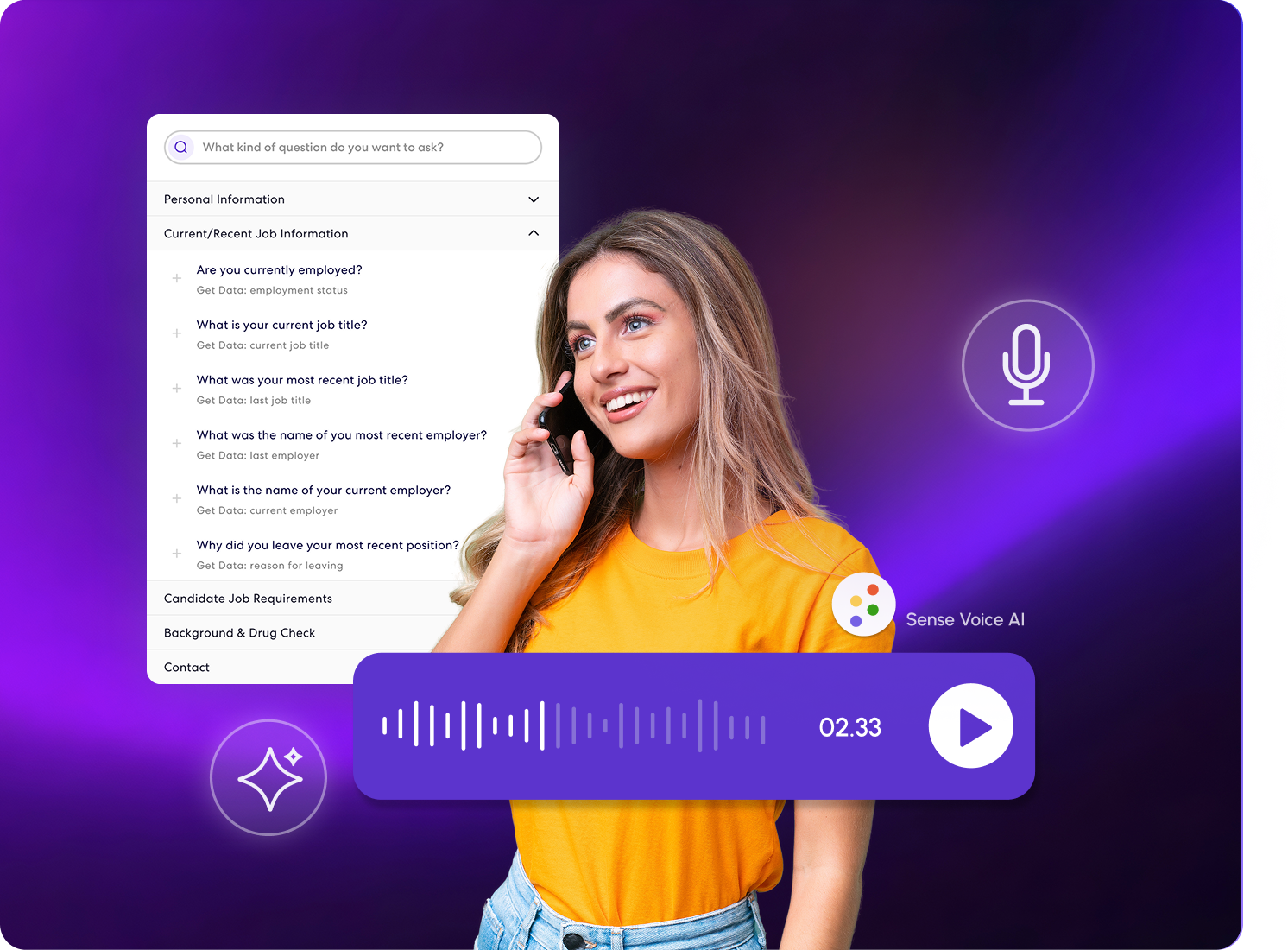 The Voice Agent engages candidates through natural, automated phone interactions. It can screen, qualify, confirm availability, answer questions, and guide next steps in real time. Each conversation feels seamless and personalized, helping candidates progress efficiently while recruiters focus on higher-impact decisions.