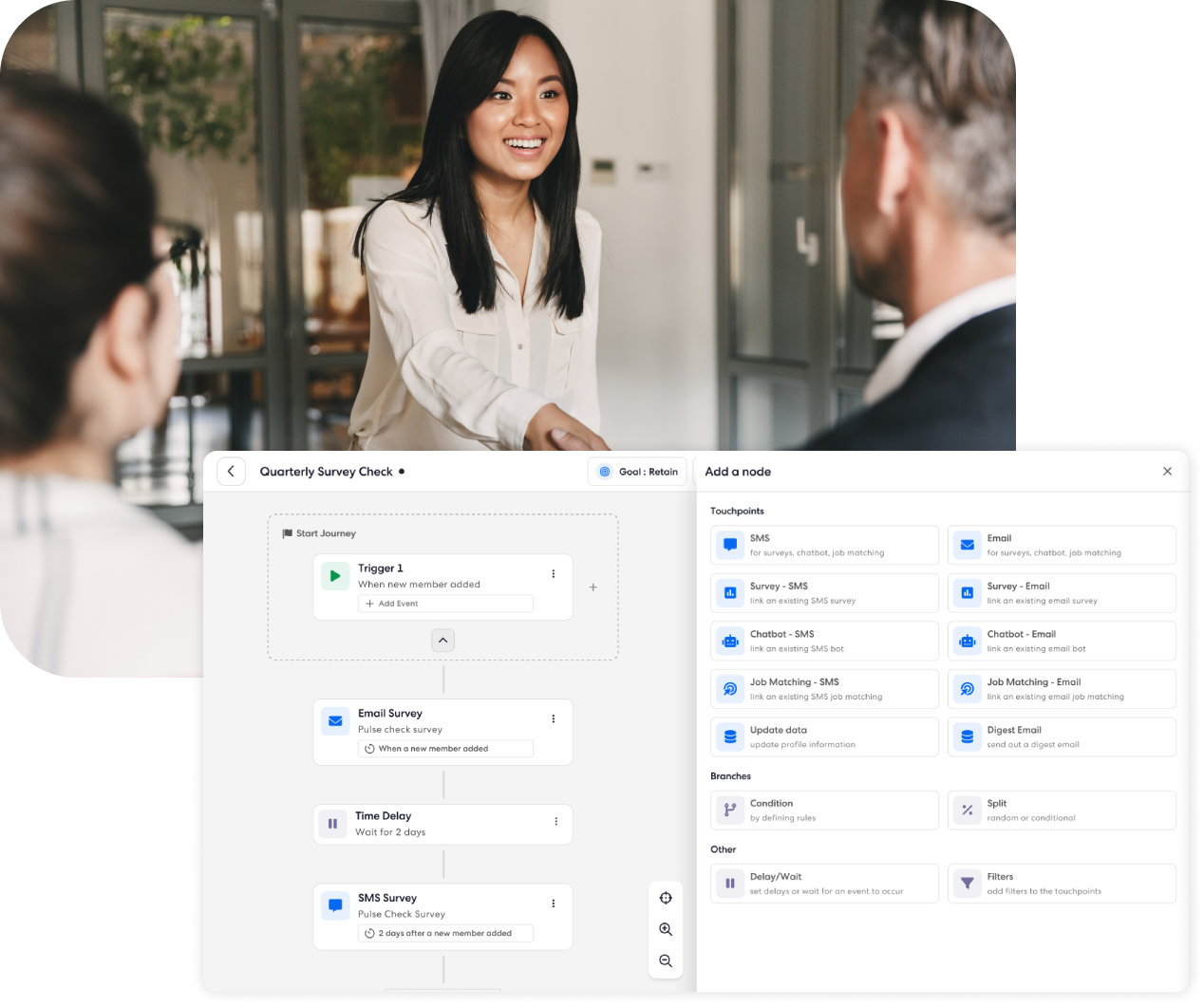 Personalized automation journeys across the entire recruitment lifecycle frees your time so you can focus on the human elements of recruiting, retention, and even sales.