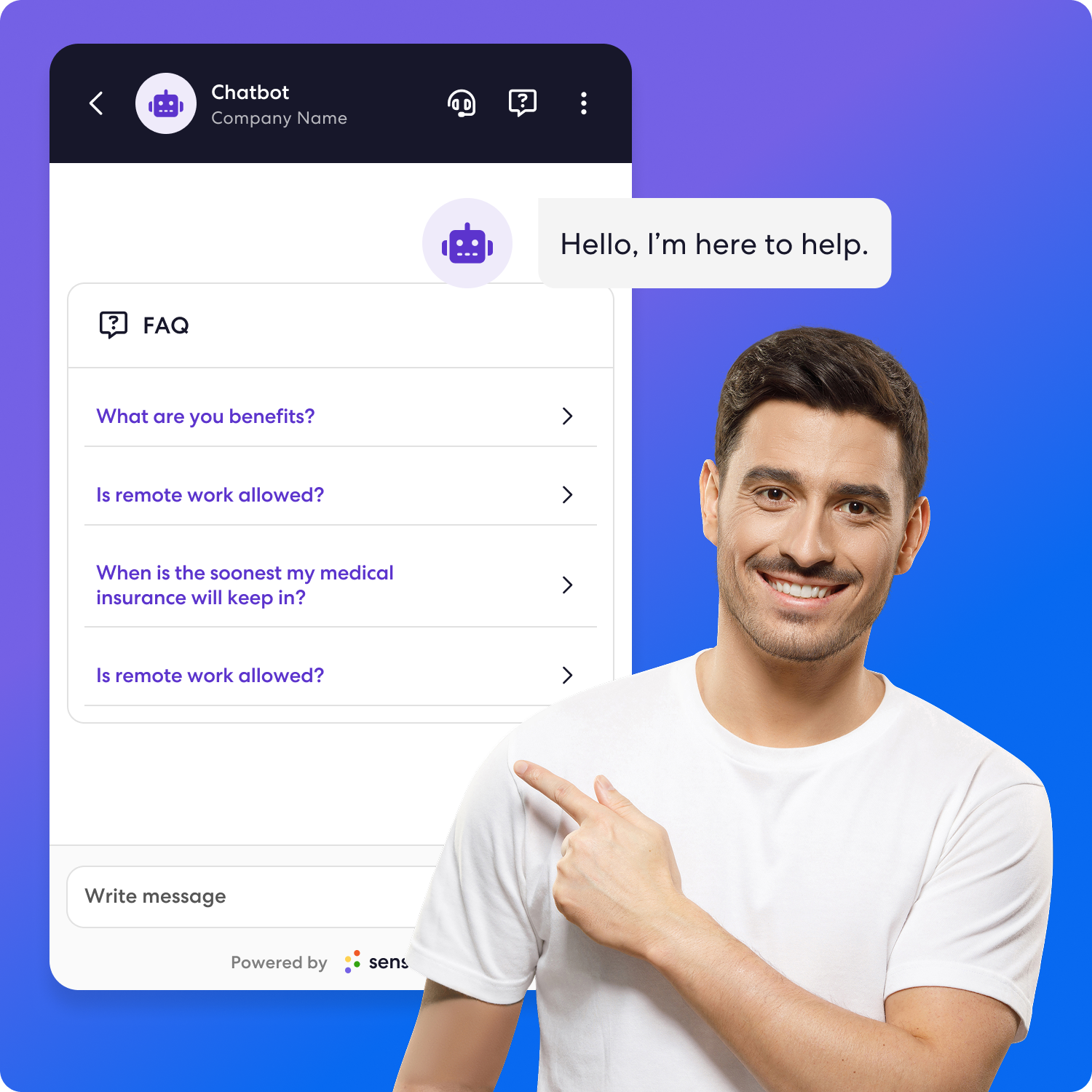 Use the Sense AI Chatbot to instantly answer questions about your company culture, benefits, or anything else candidates commonly ask about. Our recruiting FAQ chatbot understands the candidate’s natural language and will be there 24/7 to relay customized responses to job seekers who visit your site.